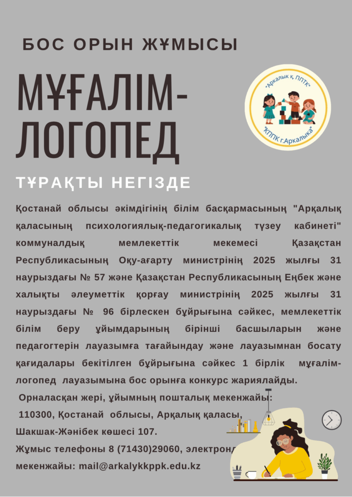 "Арқалық қаласының психологиялық-педагогикалық түзету кабинеті" КММ Қостанай облысы әкімдігінің білім басқармасы