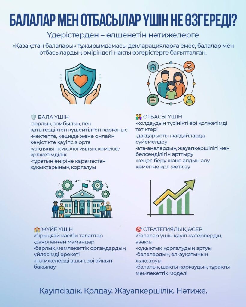 👫 «Қазақстан балалары» тұжырымдамасы аясында баланы қорғаудың жүйелі тетігі қалыптастырылды – қауіп-қатерді ерте анықтау, оның алдын алу және балалардың тұрақты әл-ауқатын қамтамасыз ету by admin · 28.01.2026