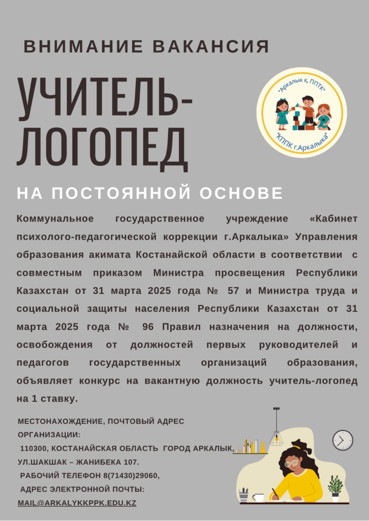 КГУ "Кабинет психолого-педагогической коррекции города Аркалыка" Управления образования акимата Костанайской области