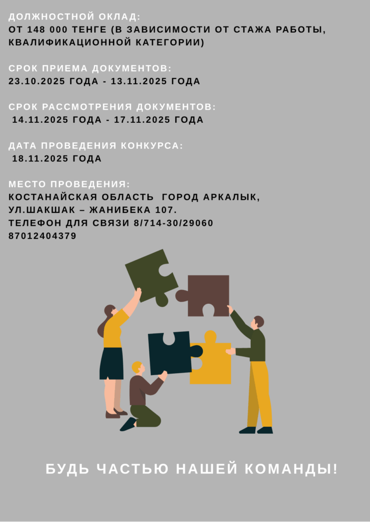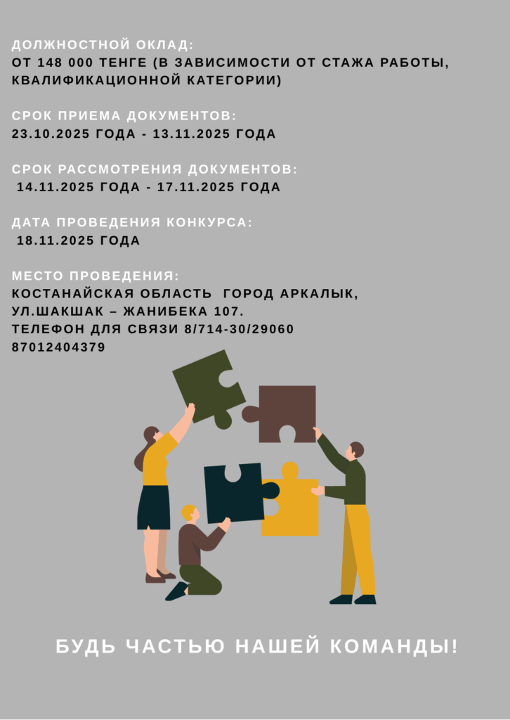 Наш адрес: Республика Казахстан, Костанайская область, г. Аркалык, Ш. ЖАНИБЕК, 107